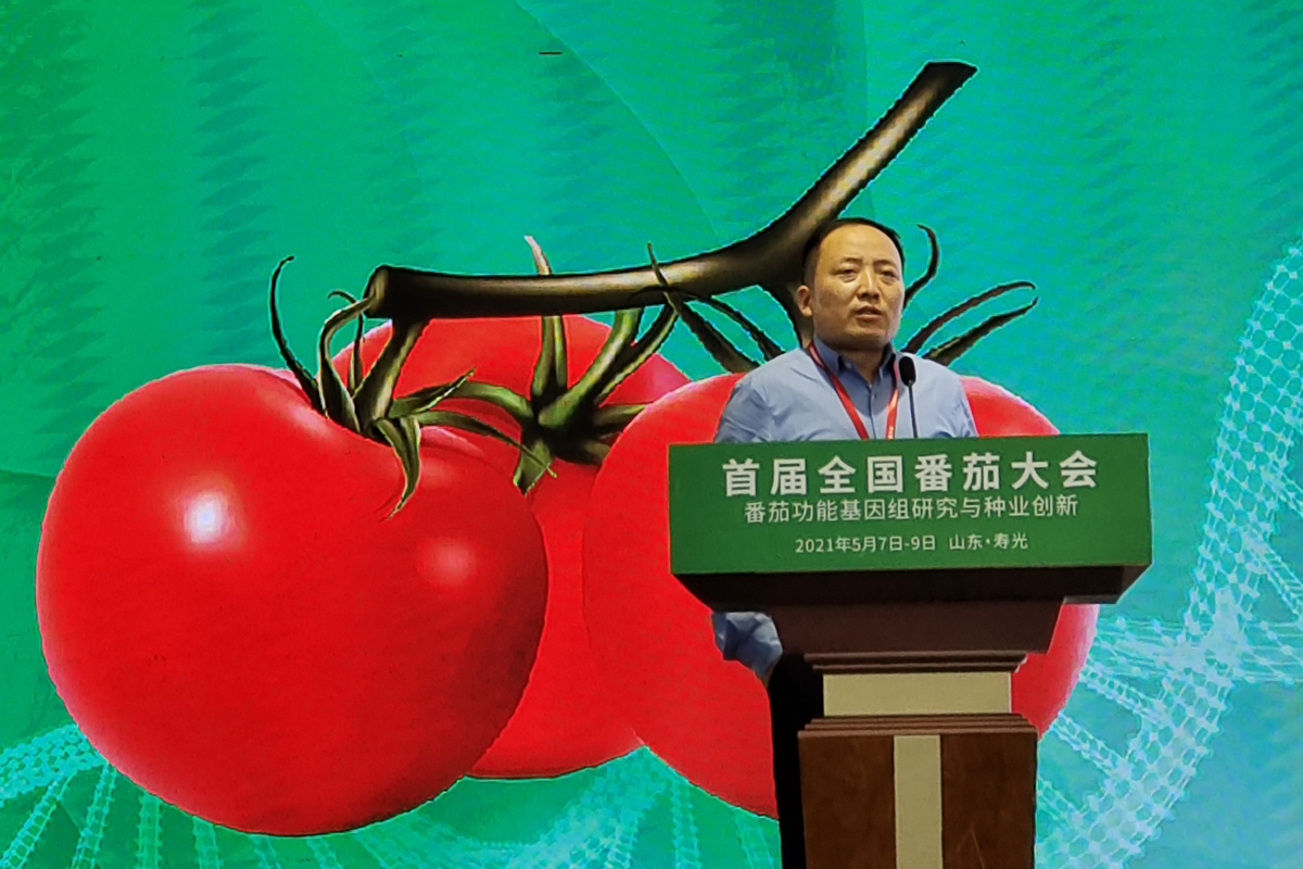 张余洋在首届全国番茄大会上作汇报(受访者 供图)