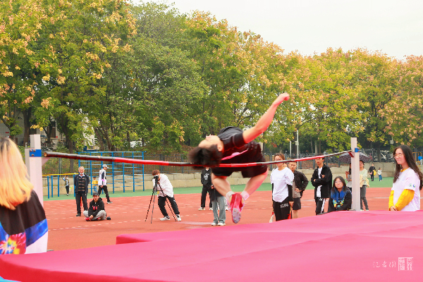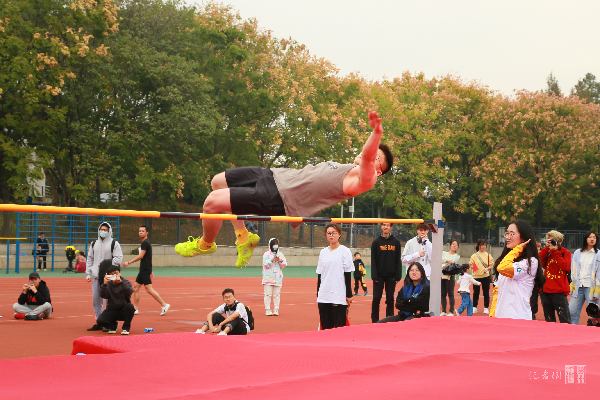 9点30分,男子跳高决赛于运动场南面举行。98堂选手李达岁在比赛开始时状态良好,一路过关斩将,最后由于失误止步第七。蔡锐鸿虽带伤参赛,但连续几跳都很完美,赢得了周围观众的欢呼。随着高度的升高,加之前面几跳导致的旧伤复发、鞋子磨损严重,蔡锐鸿在挑战1.66米时出现失误。在经过心态调整、鞋子替换之后,他鼓足勇气奋力一跳,越过了1.66米的横杆。一次次迈出坚定的脚步,一次次跨跃对自我的突破,积极拼搏、永不言弃的精神在他身上体现得淋漓尽致。