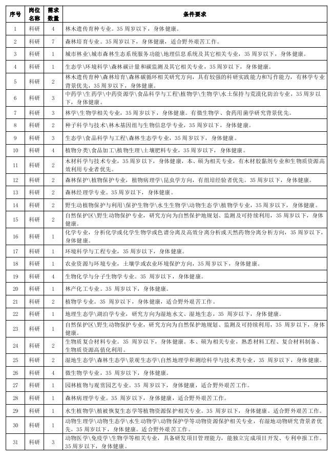 为适应新时代新任务新要求,加速推进全院林业科研事业高质量发展,构建省级林业科技创新人才高地,现面向全国诚招博士研究生,详见下表: