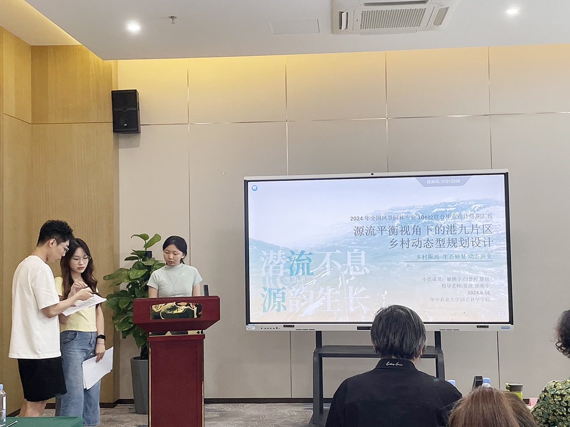 设计选题聚焦于乡村振兴主题,以打造港九片区“城乡融合实验区、美丽乡村示范区、泉源生态旅游先行区”为目标,实施山体生态修复利用、河道整治改造、全域绿化提升和村庄有机更新。本次联合毕业设计聚焦乡村振兴主题,意义非凡,16所高校一起参与了场地调研并根据场地现状进行分析汇报,汇聚了16所高校的智慧,促进了高校之间的学习与交流。与此同时,会议邀请清华大学朱育帆教授等行业领头人进行答辩成果的主持与总结,各校之间纷纷交流心得与体会。最终,毕业设计汇集全国16所风景园林专业高校的集体成果,共同探索济南港九片区和美乡村的实现之路,加快推进“泉韵乡居”齐鲁样板片区建设。我系本科生雒腾宇、闫梦婷、滕仪团队(指导老师:夏欣)受邀参加本次联合毕设,这也是我系第一次参加“全国风景园林专业10+校联合毕业设计”。