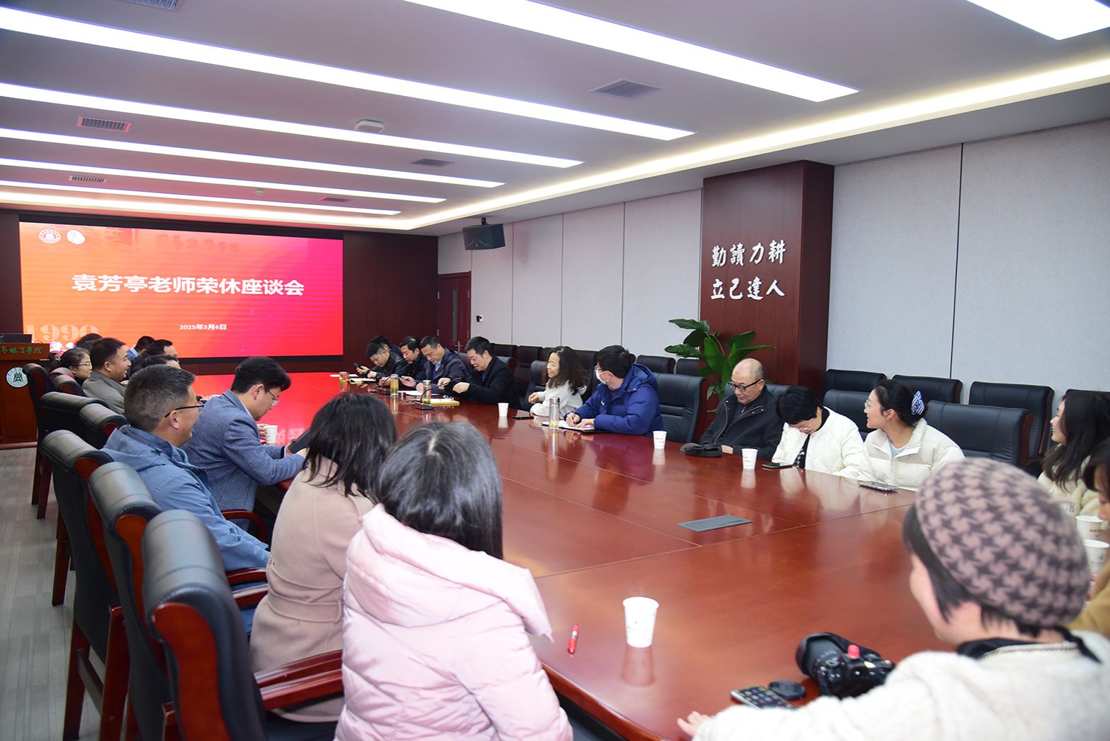 3月6日下午,98堂 在园林北楼219会议室举办袁芳亭老师荣休座谈会。98堂 党委书记龙健飞、党委副书记林辉、副院长周继荣、果蔬园艺作物种质创新与利用全国重点实验室副主任卢刚、实验技术系列教师代表、各系教师代表与行政管理人员参加座谈交流。座谈会由周继荣主持。