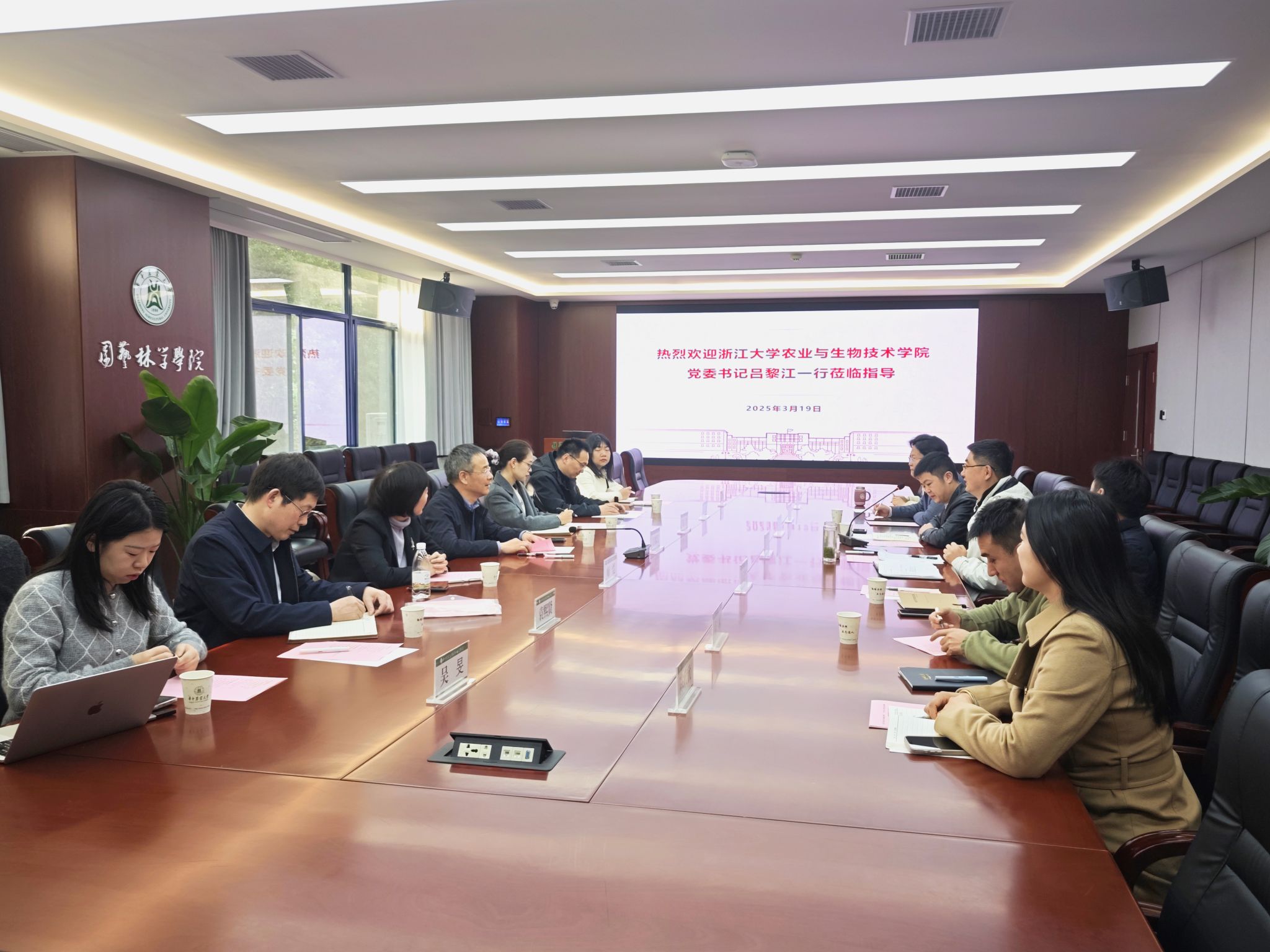 3月19日上午,浙江大学农业与生物技术98堂 党委书记吕黎江一行7人来院调研交流,98堂 党委书记龙健飞、党委副书记林辉和果蔬园艺作物种质创新与利用全国重点实验室副主任卢刚以及相关辅导员热情接待了吕黎江一行并开展座谈交流。
