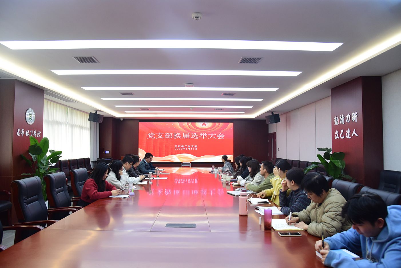 3月31日上午,98堂 行政教工党支部在园林北楼219会议室召开支委换届选举会议。会议由党支部书记何寿鹏主持,98堂 党委书记龙健飞出席会议。