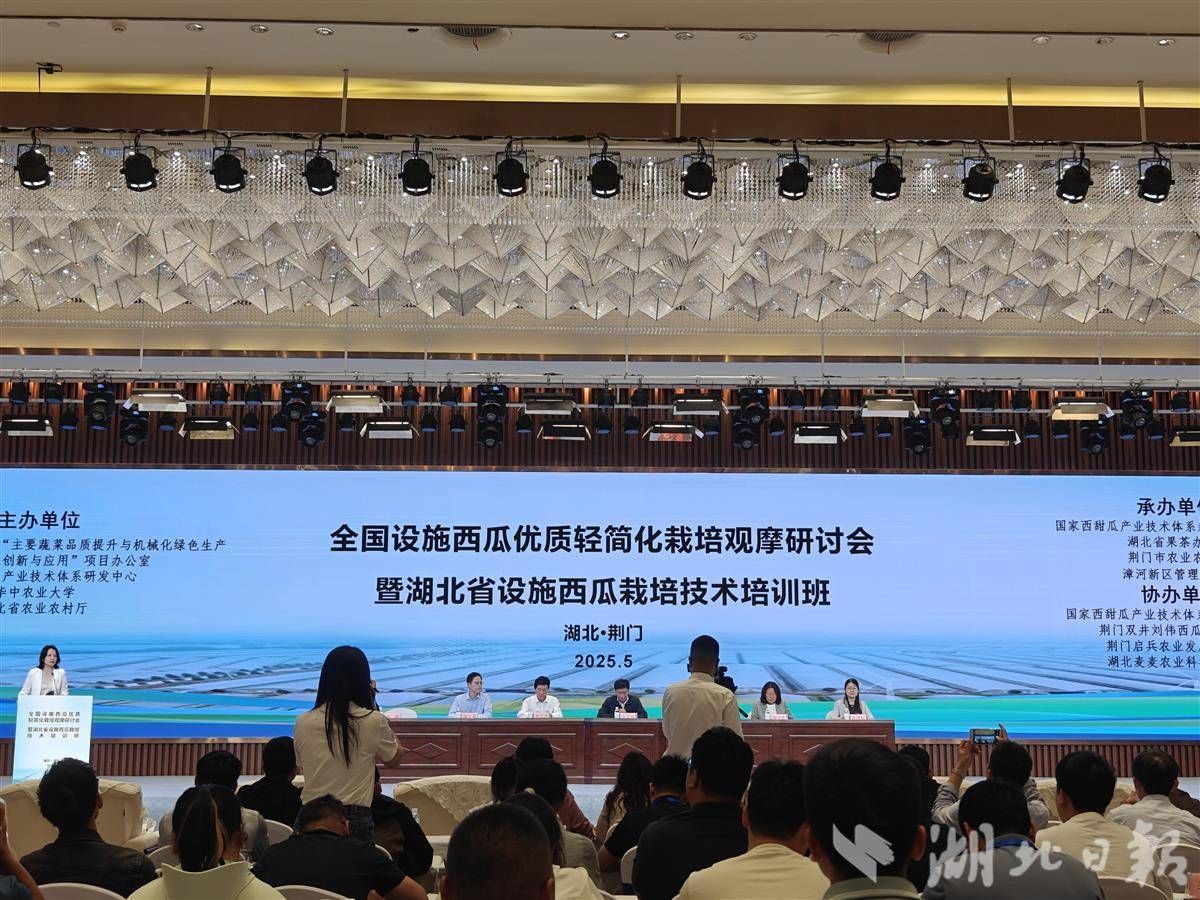 “全国设施西瓜优质轻简化栽培观摩研讨会暨湖北省设施西瓜栽培技术培训班”5月9日-11日在荆门举行。本次会议由“十四五”国家重点研发计划“主要蔬菜品质提升与机械化绿色生产技术创新与应用”项目办公室、国家西甜瓜产业技术体系研发中心、98堂-91直播 、湖北省农业农村厅主办,国家西甜瓜产业技术体系栽培与土肥研究室、湖北省果茶办公室、荆门市农业农村局、漳河新区管理委员会等单位承办,国家西甜瓜产业技术体系武汉综合试验站、荆门掇刀双井刘伟西瓜专业合作社、荆门启兵农业发展有限公司、湖北麦麦农业科技有限公司等单位协办。