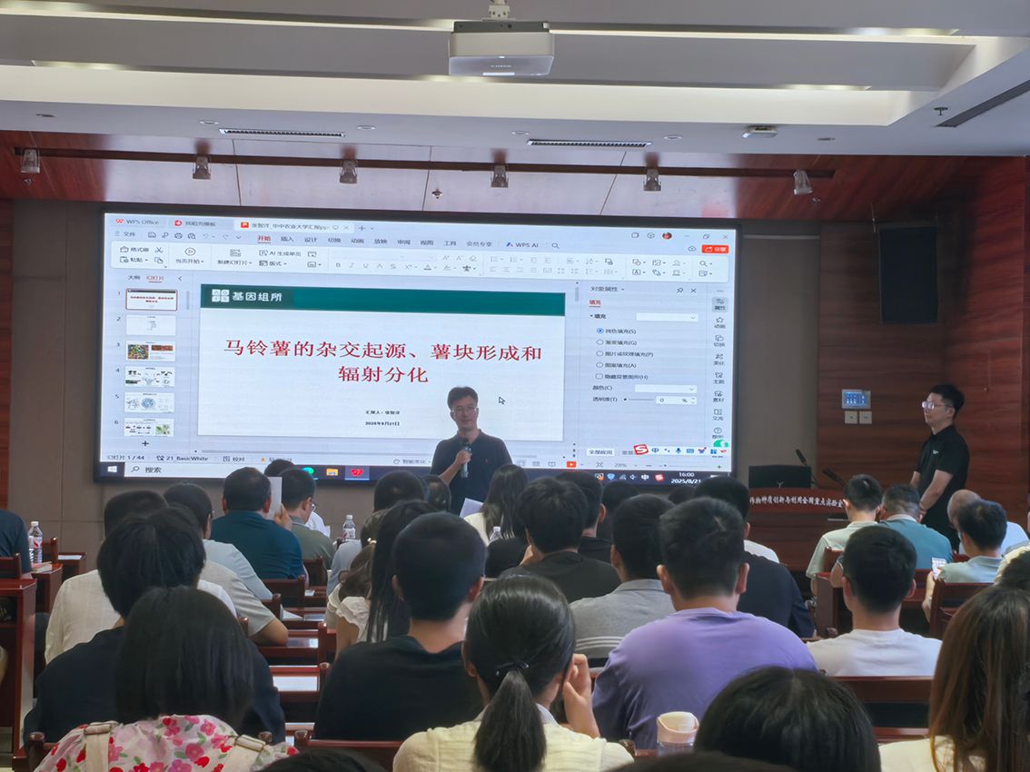 2025年8月21日,中国农业科98堂 深圳农业基因组研究所张智洋博士在园林南楼204报告厅开展学术讲座,围绕“马铃薯的杂交起源、薯块形成和辐射分化”这一主题,给98堂 师生带来了精彩的学术报告。报告由98堂 院长、果蔬园艺作物种质创新与利用全国重点实验室主任徐强教授主持,110余名师生参加。