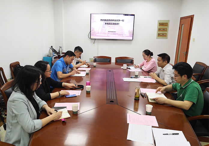 5月13日下午,西南林业大学园林园艺98堂 党委副书记赵昊一行来院交流党团学工作,98堂 党委书记张宏荣、党委副书记蔡江等人接待了赵昊一行并座谈交流。