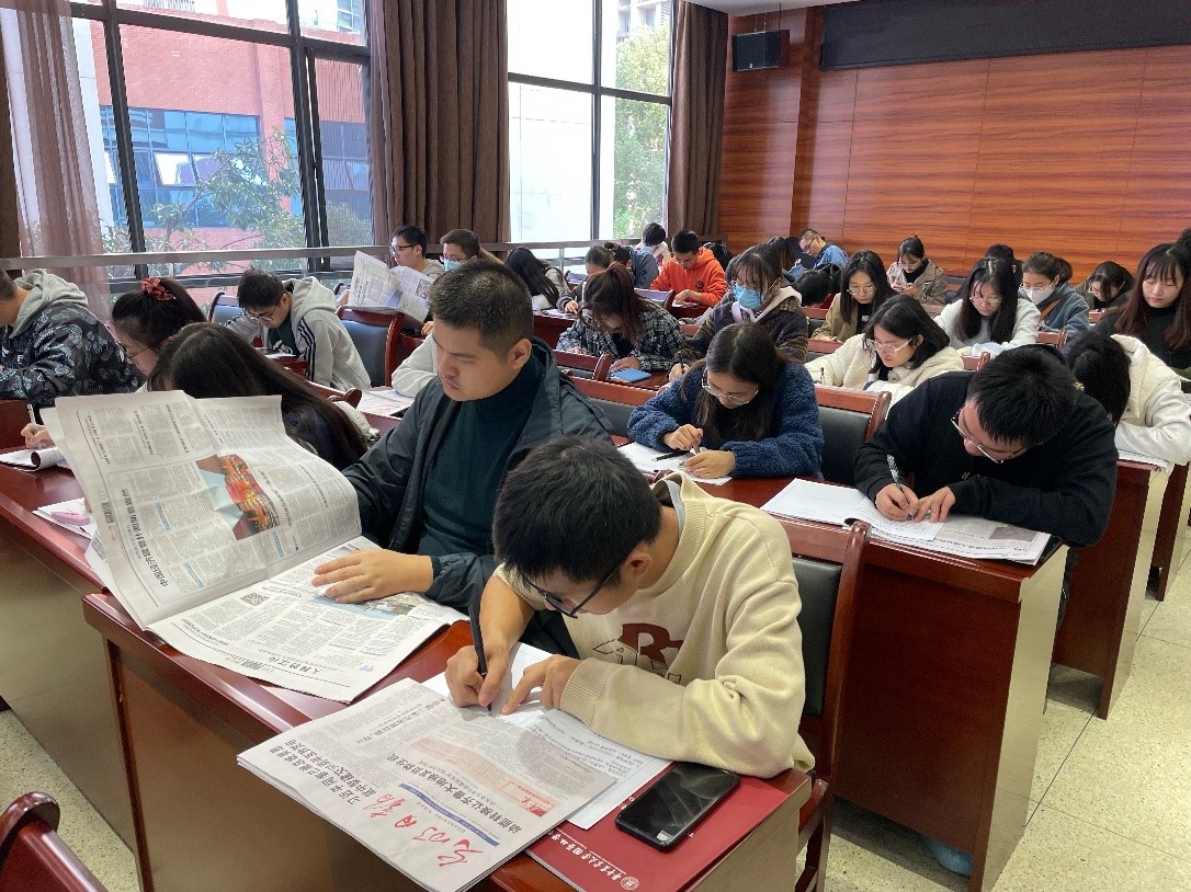 读报环节,同学们认真阅读了发放的报纸,了解时政新闻,学习相关知识。