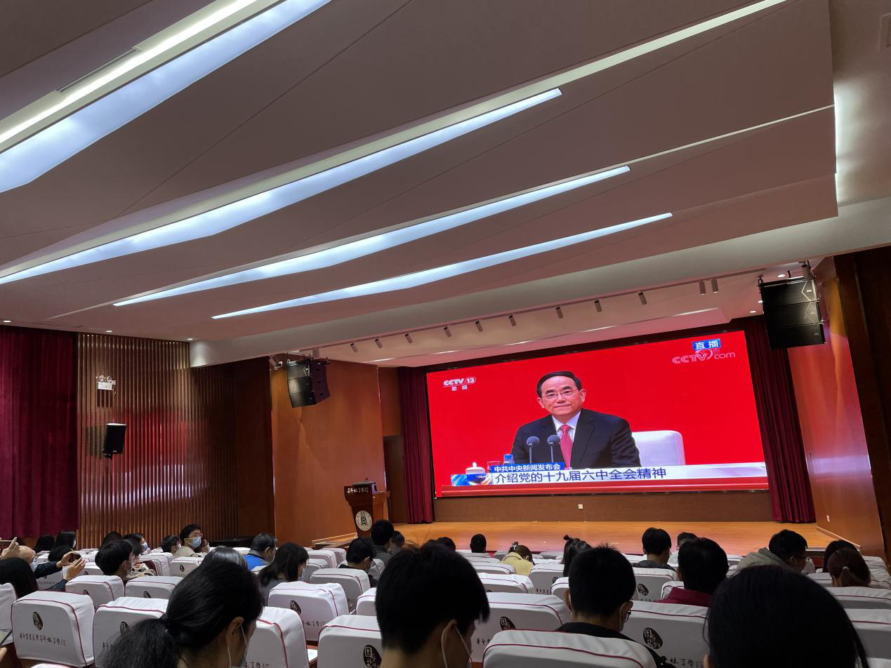 100年来,中国共产党领导亿万中国人民开拓适合中国国情的道路与方法,我辈青年在学习其精神的同时,必当继承前辈荣光砥砺奋进。2021年11月12日,园林98堂 组织师生代表在园林楼北楼228报告厅进行集中收看,观看结束后,师生围绕会议精神分享自己的认识与体会。