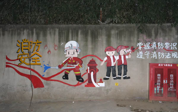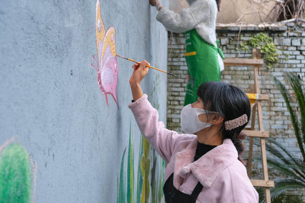 随着天色暗淡,墙面美化活动在傍晚时分顺利完成,原本破烂荒废的墙面在画笔下变得生动有趣。除美化社区环境之外,志愿者们将消防安全和垃圾分类等宣传教育内容变为社区景观的一部分,为社区开展相关宣传活动提供了便利。活动结束后,志愿者马丹阳说:“墙面美化活动进一步拓展了筑绿江城项目的内容,将专业技能与志愿服务相结合,为老旧社区注入了新的活力。”