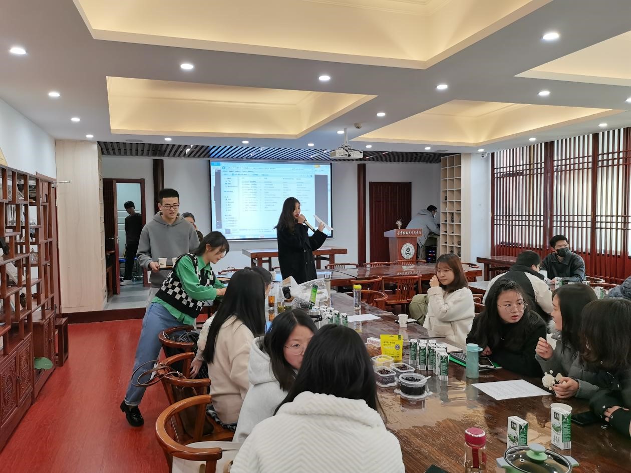 12月21日下午两点半,由98堂茶学系主办的冬至茶会在耕读茶室举行。活动伊始,主持人杨淑雅同学向大家介绍了红茶、绿茶、青茶的基本知识及保健作用,倡导大家常饮茶科学饮茶,随后袁丽萍同学讲解了奶茶的调配方法。