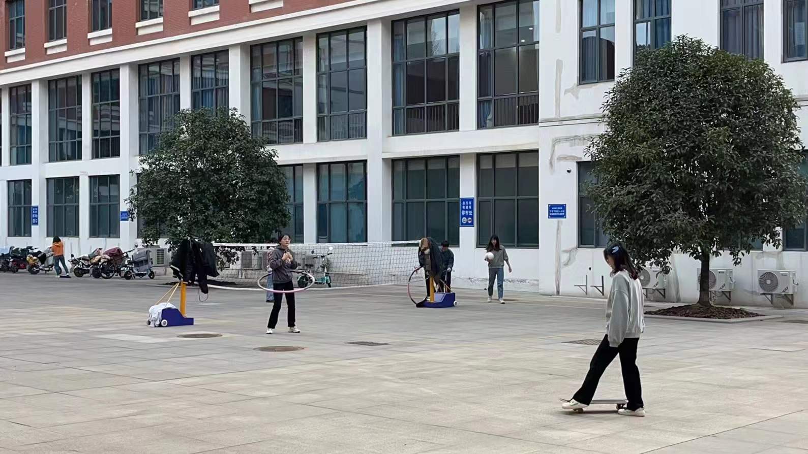 活动项目有:羽毛球、网球、气排球、跳绳、呼啦圈、滑板、毽子等,其中,滑板、毽子等项目深受同学们喜爱。每天一个小时的体育活动,让同学们在体育锻炼中掌握运动的技巧,激发了同学们热爱体育的热情,以更加饱满的精神状态,迎接崭新的一年。