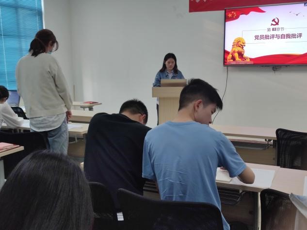 接着,叶润文同志从主题党日活动开展、理论学习情况和党支部成员风采展示三个方面对2021年本支部的工作内容展开汇报。叶润文对支部下一步的工作提出了明确的目标,表示今后要进一步落实三会一课要求,成立党小组,加强支部成员之间的交流,开展内容和形式更加丰富多样的主题党日活动和支部特色活动。随后,到会党员依次进行的批评与自我批评。最后,支部成员们进行了党员民主评议活动,对党支部的工作进行了评价,并在支部的全体党员中评出了9名优秀党员。