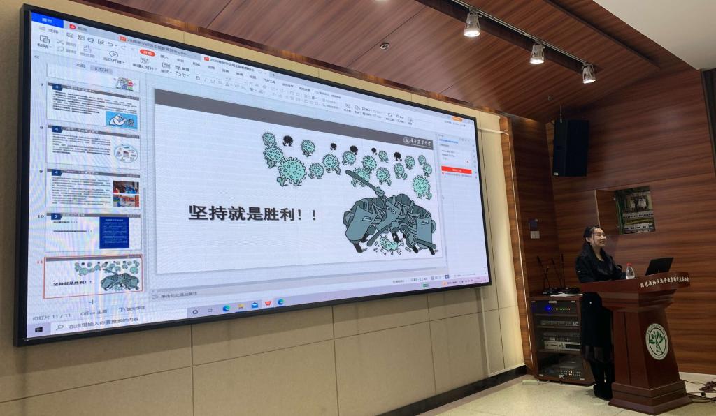 班会伊始,心理委员张慧贤向大家播放了一段视频,详解介绍了新冠病毒的变异能力及奥密克戎的危害性,叮嘱大家一定要做好个人防控。随后她谈到,在疫情管控下,北京冬奥会顺利举办,各国运动员在赛场上充分展现了奥林匹克精神,也为我们中国政府的国际担当与应对能力感到十分自豪。最后,张慧贤说到,作为一名研究生,我们首先要做的就是严格遵守学校疫情防控规定,做好自己本职工作,按时进行核酸检测,不随意外出。
