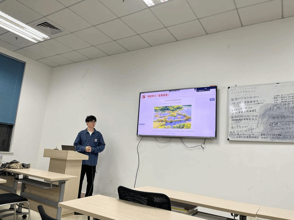 随后,陈杰同志选择了与本专业密切结合的“生物安全”作为本次理论学习的专题,明确提醒大家应具有生物安全意识,做到不泄露国家重要遗传资源和基因数据。