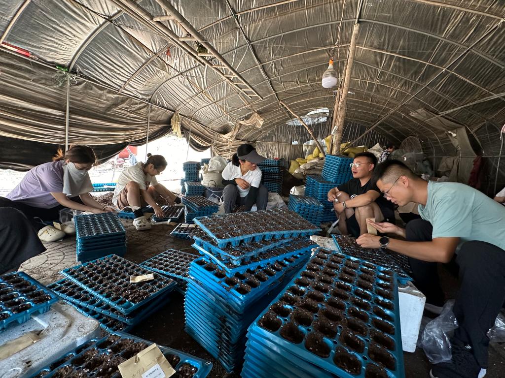 团队成员在育苗场播种材料(通讯员 袁守娟 摄)