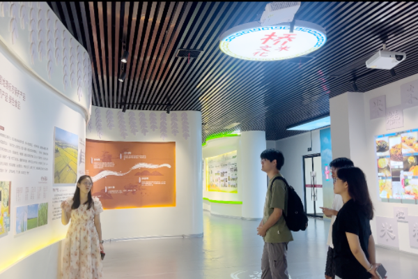 京山桥米以其上好的口感品质和悠久的种植历史,被列为中国国家地理标志产品。而国宝桥米有限公司则是京山市规模最大,现代化技术最成熟的大型农产品加工企业。在京山市农业农村局王蛟龙干事的带领下,队员们走进了国宝公司桥米文化展览馆,讲解员热情细致地向团队介绍了公司的发展历程和基本运营情况,并向队员们讲述了桥米种植文化的渊源。实践团队也在讲解员的带领下参观了桥米的机械化生产、包装线。队员们都惊叹于现代科技为农业生产带来的便利,受益颇多。
