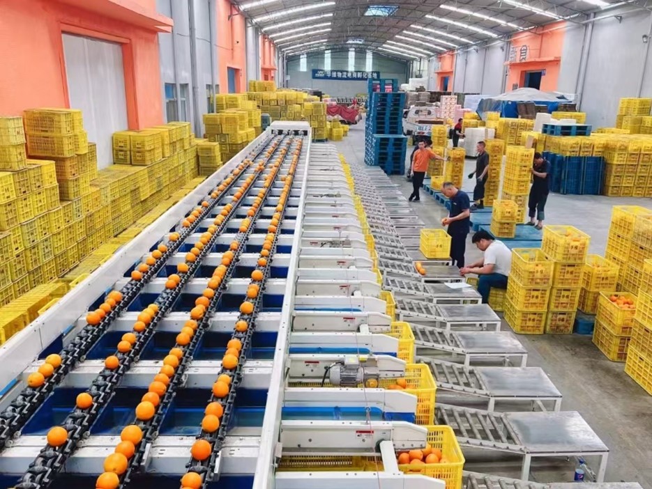 随后,队员们深入华维物流园的核心——现代化的仓库与自动化分拣中心。在这里,先进的物流设备与智能化管理系统无缝对接,脐橙从入库到出库,每一个环节都实现了精准高效。实践团队见证了脐橙如何在短时间内完成分拣、包装、质检,最终快速送达消费者手中的全过程,对现代物流的高效运作有了直观的认识。