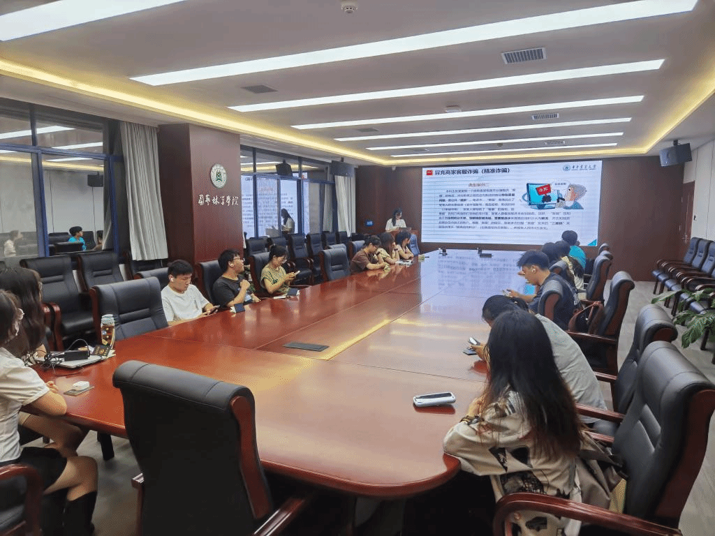 会上,宣传委员朱雨洁进行了防诈骗教育的讲解。朱雨洁同学通过生动的案例分析,详细解读了当前常见的诈骗手段和防范策略,提醒同学们在日常生活中要提高警惕,不轻信陌生电话和信息,不随意透露个人信息,遇到可疑情况要及时向学校或警方求助。