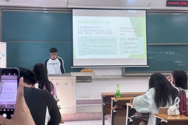 接着,丁浩伟详细地讲解了进行团支部志愿活动的流程,一一说明了活动策划案的撰写格式及要点到地点审批等注意事项。在交流环节,23级未换界公委们踊跃发言分享心得,同时,现场工作人员针对公委们提出疑问依次进行解答。
