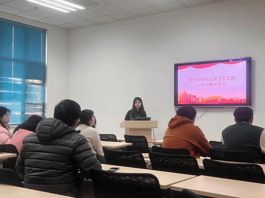12月16日,果树学研究生第三党支部在园林南楼521会议室开展十二月主题党日活动。本次会议由党支部书记李微主持,支部党员及入党积极分子参加了此次学习,邀请党建指导老师李春龙老师参会。