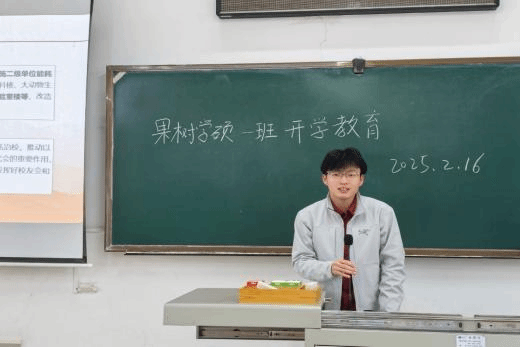 果树学硕2班的班长吕竟超以“以质图强,融创致新”为主题,鼓励同学们在新学期中注重学习质量的提升,勇于创新,积极参与科研和社会实践,努力成为具有创新精神和实践能力的高素质人才。