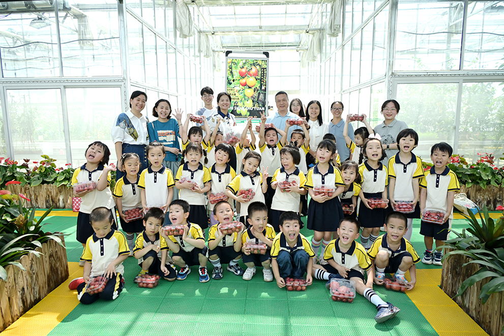华农附校幼儿园师生在番茄大棚里参观